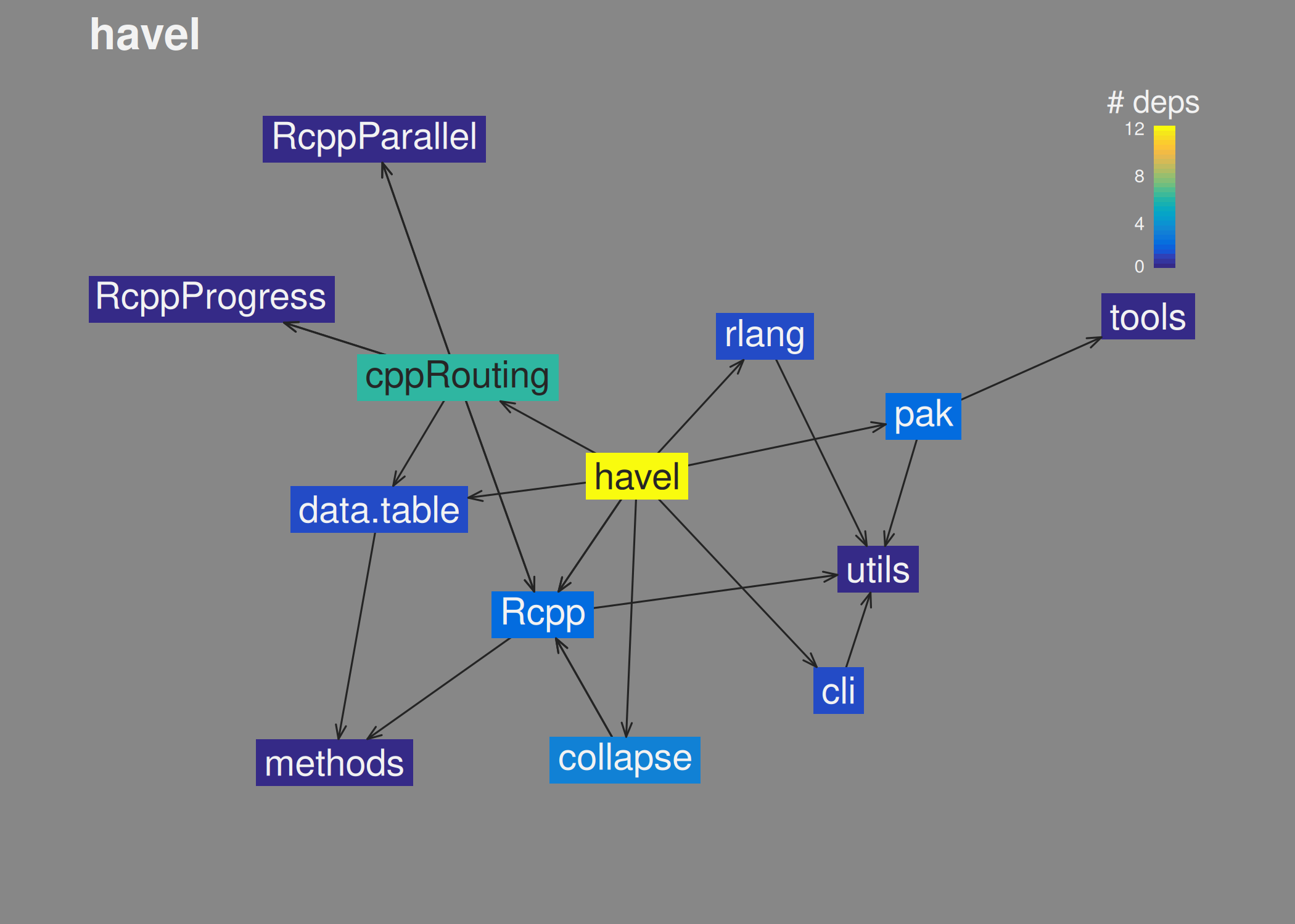 plot_deps_graph("andrewGhazi/havel") # looks it up on GitHub