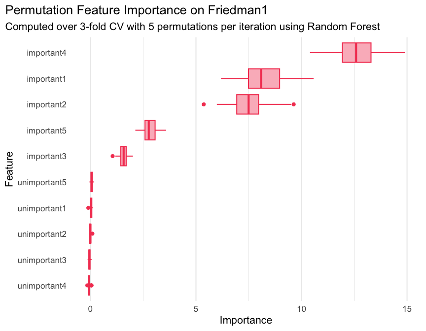 #> 10: unimportant5 1.0126572When PFI is computed based on resampling with multiple iterations,