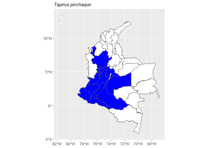#> 3 ARIAS-ALZATE A, JA PALACIO VIEIRA y J MUÑOZ-DURAN. 2009. Nuevos registros de distribución y oferta de hábitat de la danta colombiana (Tapirus terrestris colombianus) en las tierras bajas del norte de la Cordillera Central (Colombia). Mastozoología Neotropical 16:19-25.