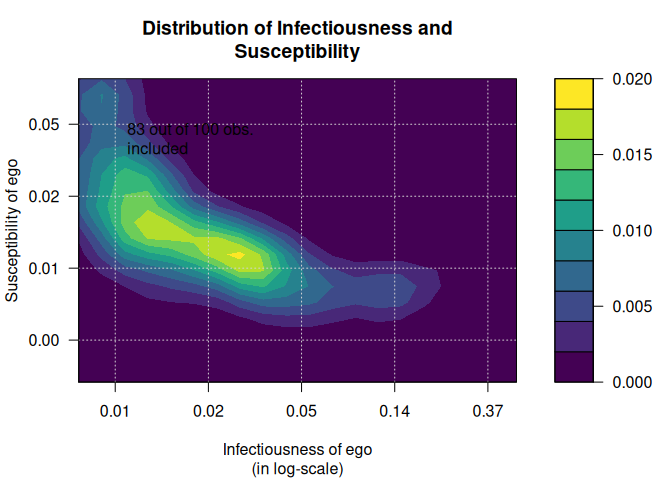 out <- plot_infectsuscep(diffnet, bins = 20,K=5, logscale = FALSE, h=.01)