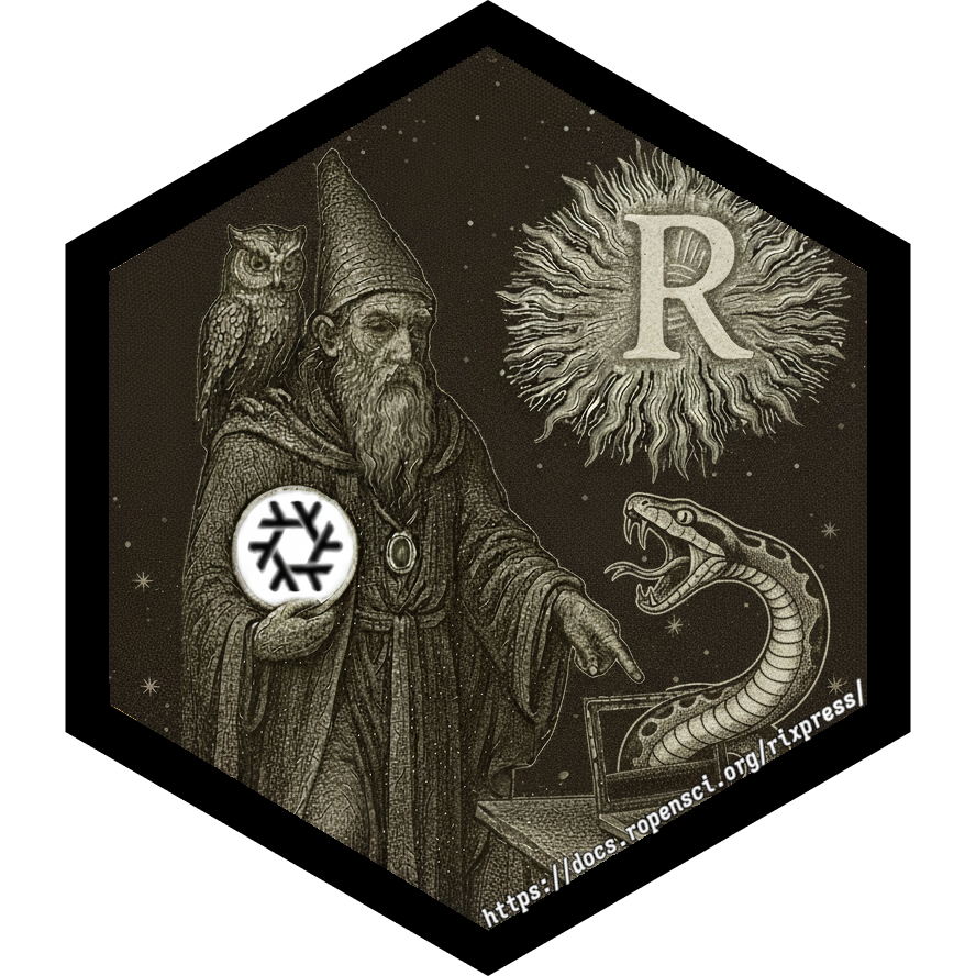 rixpress streamlines creation of micropipelines (small-to-medium, single–machine analytic pipelines) by expressing a pipeline in idiomatic R while delegating build orchestration, dependency management, and multi-language execution to the ‘Nix’ build system. It is inspired by the user experience of the {targets} package and builds on the {rix} package to obtain fully reproducible development/runtime environments.